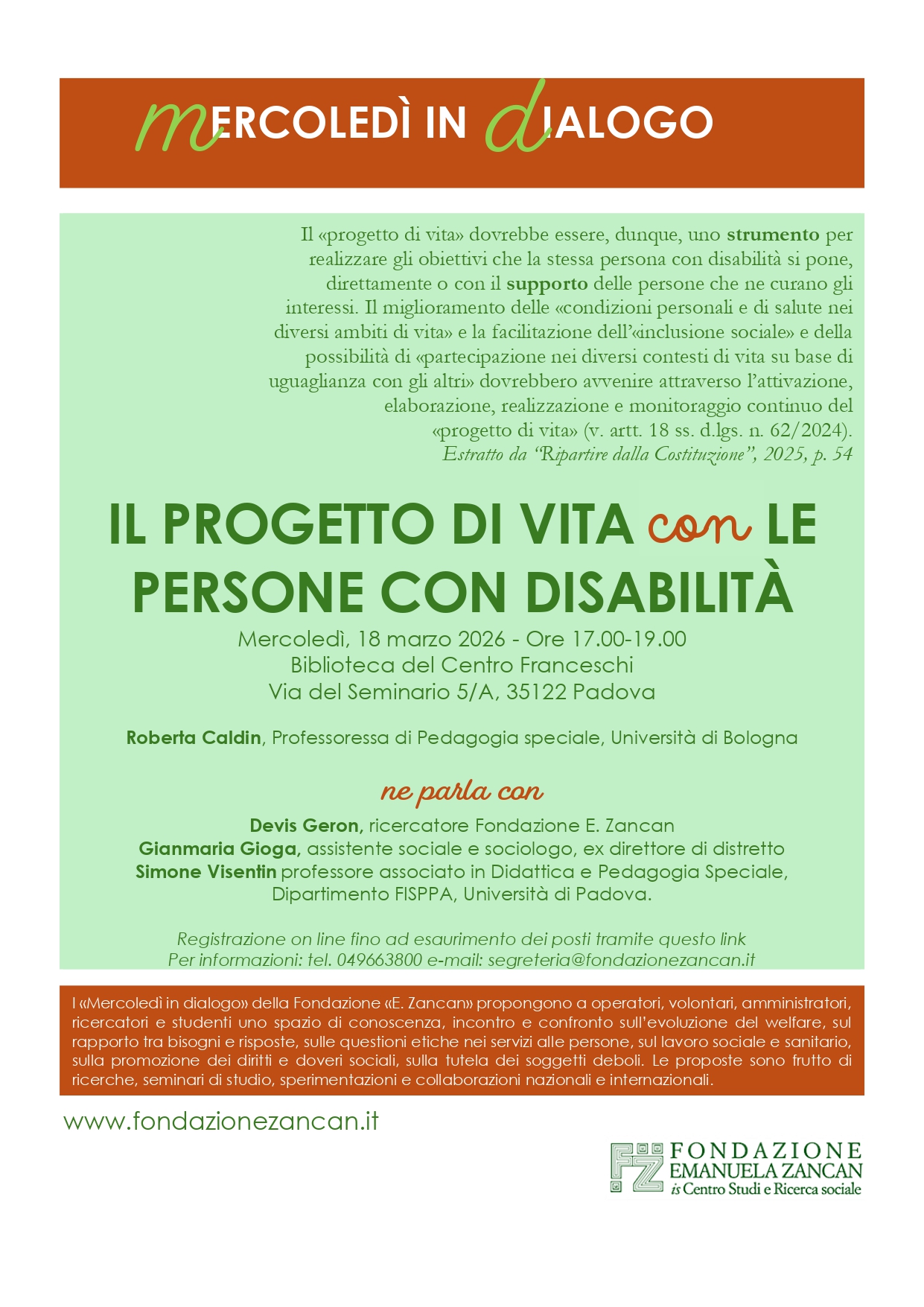 17 giugno, ore 18:00; 22 giugno, ore 18:30; 26 giugno, ore 11:00. Questi sono i prossimi appuntamenti con Fondazione Zancan
